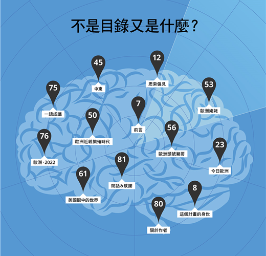 ▌歐洲曾是西方文明的濫觴之地,在今天亦是不同宗教、文化與社會經濟元素匯集的萬花筒。來自不同文化背景的社群在這片土地上交流、碰撞,產生偏見是在所難免;但若能不為偏見本身所局限,轉而探求種種成見背後的歷史淵源與文化掌故,我們更有機會認識一個豐富多彩的歐洲。本書中各幅「偏見地圖」在互聯網早已備受追捧,今次地圖作者以輕鬆詼諧的語調,述說種種偏見背後的故事,為讀者認識歐洲風情,提供了全新的視角和體驗。