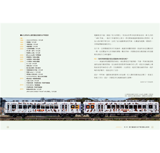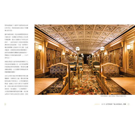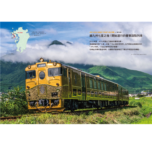 搭乘火車本身就是旅行的目的,來一趟日本,讓火車來款待你。★貼身專訪榮獲鐵道藍絲帶獎、鐵道桂冠獎等多項獎項的日本鐵道第一設計師:水戶岡銳治