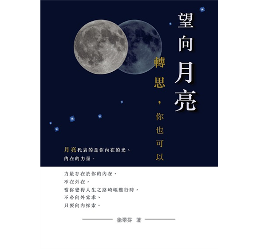 我們可以發現本書有一大特色,翠芬透過很多生動生活化本土化的事例和個案一步一步、一次一次的帶領讀者來親近她要表達的主題,使一些難懂的觀念變得簡單而且可以在生活中練習,所以這是一本很實用而且有用的好書,謝謝翠芬將它寫出來,本書一定可以嘉惠許多面臨生命困境正在尋找答案或願意【有時是被逼】成長的朋友,看見生命的出口,邀請您一起來閱讀、了解、練習,讓我們一起望向月亮--內在的光明和力量!