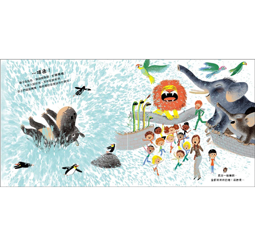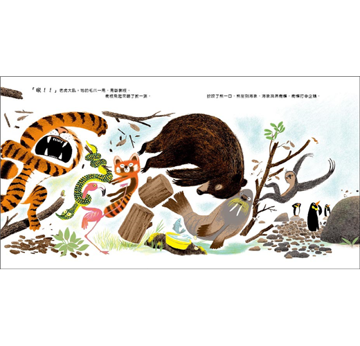 精彩的動物大集合!內有開門折大拉頁,精彩呈現動物被踢翻的連環動作畫面,很能引起幼兒閱讀興趣。故事中有許多聲音、動作、形容詞,是一本能讓親子共讀充滿笑聲的幽默圖畫書。法國最受歡迎的插畫家馬克‧布塔方的美麗插畫,大小讀者都會為之著迷!