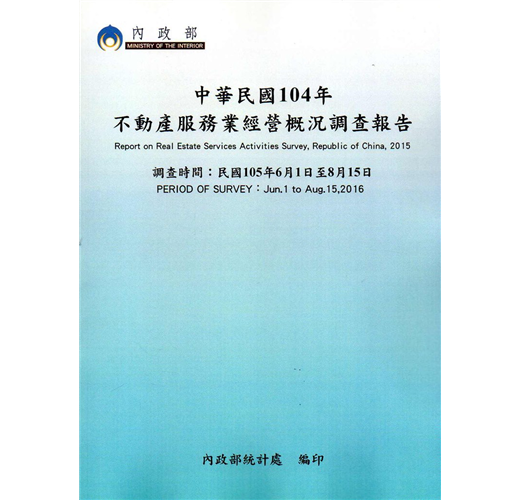 內政部為蒐集104年不動產服務業從業員工人數、薪資、營業狀況、收支狀況及對房地產政策景氣看法等資料,供為估算不動產服務業產值、充實房地產資訊及制訂相關管理政策之參考,於105年6月1日至8月15日辦理「104年不動產服務業經營概況調查」。針對主管機關核准登記有案,且於104年12月底仍繼續營業之不動產服務業為調查對象,採「分業分層隨機抽樣法」,以派員實地訪查為主,輔以網路填報、通信回郵、傳真、E-mail等多元回收管道方式進行,共完成2,251份成功樣本,在95%信心水準下,抽樣誤差不超過正負2.07個百分點。