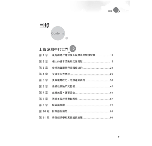 概言之,本書收錄文章所反映的基本想法有三。一是危機是永恆的,這是由人性決定的(參見第九章「危機與麻雀」)。二是國家利益是永恆的,這是由資源稀缺性決定的(參見第十章「財政懸崖猜想」)。三是全球經濟金融競爭的勝者屬於那些在經濟繁榮時期(或危機未爆發前)敢於自我否定、自我提升的國家,這是「優勝劣汰」規律決定的(參見第七章「危機無疆,儲蓄是金」)。