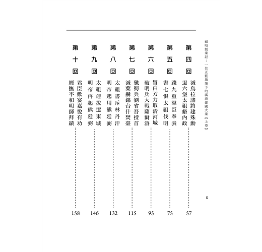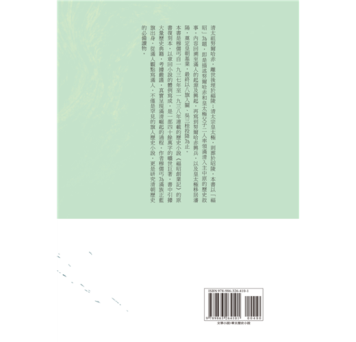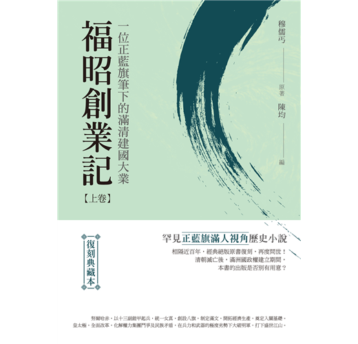 本書是穆儒丐自一九三七年至一九三八年連載的歷史小說《福昭創業記》的原書復刻本,以章回小說的體例寫成,是一部四十餘萬字的曠世巨著。書中引據大量歷史典籍,考據嚴謹,真實呈現滿清崛起的過程。作者穆儒丐為滿族正藍旗出身,從滿人觀點寫滿人,不僅是罕見的旗人歷史小說,更是研究清朝歷史的必備讀物。