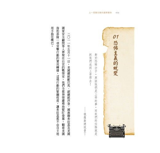 也許有人認為要了解國際關係,需要擁有絕佳的外語能力,或者將國際關係想像成是一門知識門檻很高的學問。其實與國際關係相關的知識,在我們周邊俯拾即是,而本書的寫作宗旨便是企圖將「國際關係」從學術神壇請下。書中將特意迴避深奧的國際關係理論,也盡量避免使用與國際政治相關的專門術語,希望能以淺顯易懂的文字及語言,再帶入對世界和平的期盼與悸動,讓讀者能夠從電影的劇情中,了解背後錯綜複雜的國際關係。