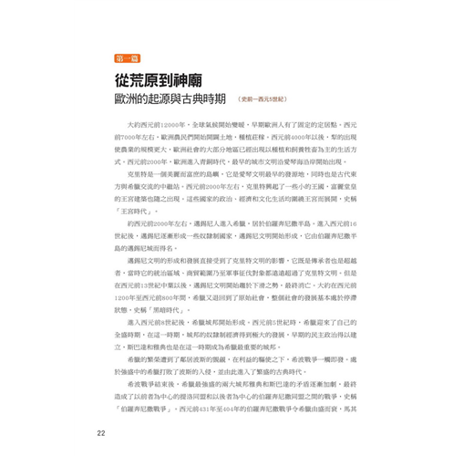 2.以時間為主線觀覽全局,更從宏觀與微觀不同的角度切入歷史,讓讀者不再錯過歐洲歷史大小事。