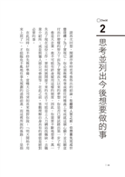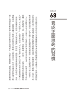 為了擁有美好的後半場人生,必須先好好認清與分析個人的優缺點。希望能在離世的那一刻,帶著微笑對自己說:「不枉此生」。在接下來的內容,我們會討論各式各樣的問題。因此,在閱讀本書時,請務必在手邊準備好一本隨時能寫下答案的筆記本,並記錄自己的答案,或寫下在看到問題時,衍生出的各種觀點與感想等。這些隨筆的內容將成為你今後人生的羅盤。
