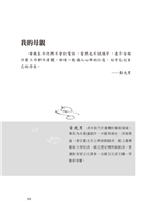 回憶父母生活點滴,是什麼令人觸動心弦?天下父母心,對兒女又是怎樣的百般呵護?本書收錄的作者不乏知名的作家、政治人物、藝文人士,文筆細膩,風格溫馨。透過作者的筆觸,彷彿與其共同經歷了人生重要的關鍵時刻,感受到歡欣聚首、生離死別等等的過程,讀起來格外讓人動容而發人深省。
