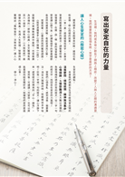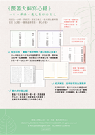 《跟著大師寫心經》不是真的想成為大師,而是能書之於手而應於心。靜靜地跟著大師的筆墨,心隨境轉,境隨心轉,在一字一佛中,領悟到「萬法皆空,法無自性」後,所得到安寧自在,超脫自己的真智慧。