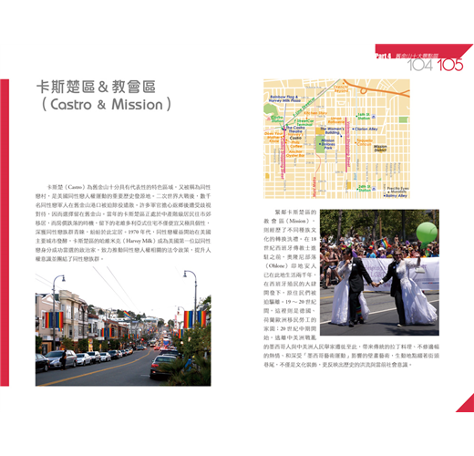 過去兩個世紀,舊金山交織在由世界各地懷抱著夢想而來的移民歷史與文化中,即使不若美國東岸的城市古老,卻蘊藏著成熟而複雜的人文情緒,醞釀出兼容並蓄的多樣性。多樣性,讓舊金山風情萬種,不僅人文如此,景色也如此。在這裡,能搭乘百年古老的街車穿越現代摩天樓,前往海鷗翱翔的碼頭灣邊,靜靜體會浪漫又宏偉的大橋美景。或者,躍上世界僅存的叮噹車,騁馳於綿延起伏的山丘上,細數色彩繽紛的維多利亞式古典木屋。然後,參與完一年四季數不清的熱鬧嘉年華會後,飢腸轆轆地徘徊在加州海鮮、墨西哥捲餅、祕魯醃魚、滇緬滋味、印度咖哩、日本拉麵,或是義式風情外難以選定。在這裡,不會感受到大城市街頭盛裝打扮、品頭論足的壓力,嬉皮的精神讓所有人都能隨意做自己。
