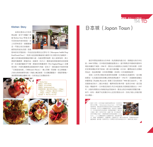 中國城牌坊/古聖瑪麗教堂/天后古廟/花園角廣場/華盛頓廣場公園/聖彼得保羅大教堂/城市之光書店/傑克凱魯亞克巷/科伊特塔/九曲花街/西洋鏡餐廳/臭玫瑰大蒜餐廳/維蘇威歐酒館/南京小館/嶺南小館/好旺角飽餅店
