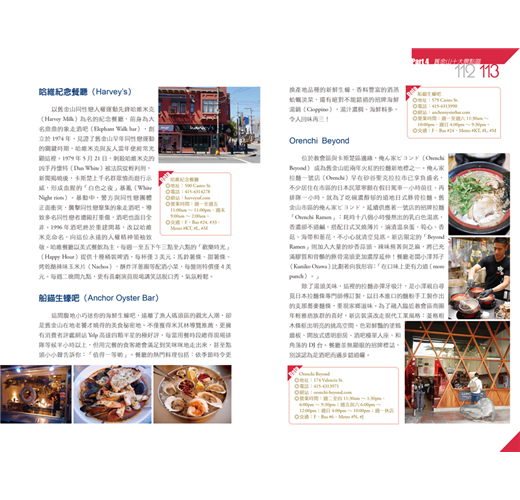舊金山,由十九世紀的採礦淘金潮,延伸至今日的科技淘金夢,吸引世界各地的人們來此追逐夢想,促成此城市多元文化的精彩融合,展現在美食與建築之中。自然獨特的綿延山丘,造就叮噹車穿梭住宅和大廈間的特殊街景;隨著山坡遠眺港灣美景,能否看見隱身雲霧間的金門大橋、與海中的惡魔島呢?本書還告訴你,許多只有舊金山在地人才知道的市集與派對、巷弄據點,可不要錯過囉!