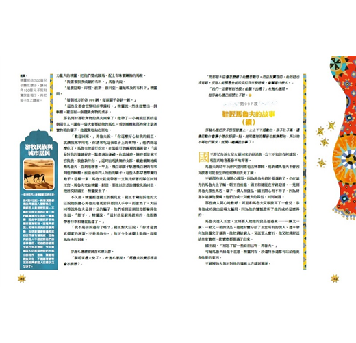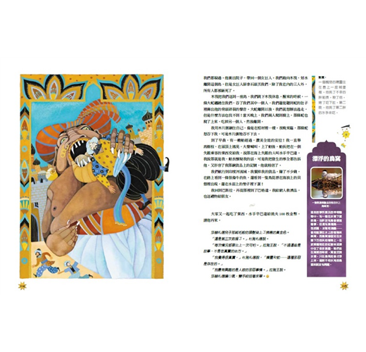 《國家地理阿拉伯神話故事》透過納波里生動迷人的筆觸,配上巴利特的精美插畫,讓家傳戶曉的阿拉丁、航海家辛巴達、阿里巴巴和四十大盜等角色全都躍然紙上,帶小朋友走進一段段精采奇幻的歷險奇遇,點燃閱讀的熱情,開啟天馬行空的想像力。