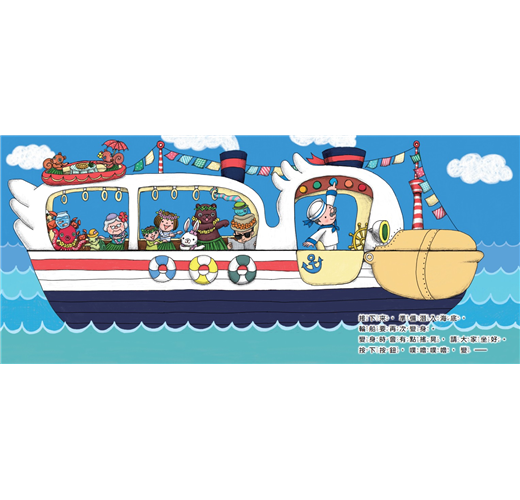 請小朋友自己來幫列車變身,自己翻開特別設計的裁切分頁,親眼觀察列車的外觀/沿路的風景/上車的乘客,三種人、事、物的變化。親子一同想像列車上乘客之間的互動和對話。
