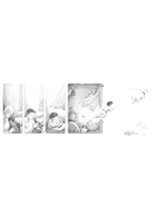 蔡敏玲 國立臺北教育大學幼兒與家庭教育學系教授兼系主任電視還開著,床的周邊被許多玩偶包圍的老人,握著遙控器,看來是睡著了。夢裡,孩提時代的朋友小白來訪,喚醒童年。小白拉著男孩躍出窗外,一直往前奔跑。五格小圖呈現男孩與狗在果園裡爬行、嬉戲;接著,他們抬頭仰望番茄,巨大如他們單純的快樂。番茄葉上,男孩和小白相互模仿,或趴或舞或蹲,然後一起縱身飛去。蘆葦田旁,稻草堆邊,玩耍不停,心和身體同時躍動。牆的另一邊,十倍大的白鵝猛地探出頭來,小白立即變成大狗,載著男孩飛進青蛙的世界。青蛙吐出詭譎的大泡泡時,換成男孩背著縮回原狀的小白逃離。人、狗、番茄和白鵝看似任意地放大縮小,或許正是夢裡,老人╱男孩心理真實無所畏懼的展現。