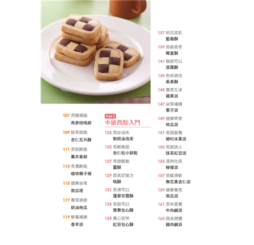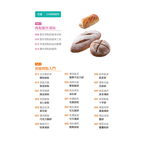本章所挑選的西點,製作較為容易,適合剛入門學烘焙的讀者。只要認真學習,多加練習,就可以自己親手製作出美味的西點啦!