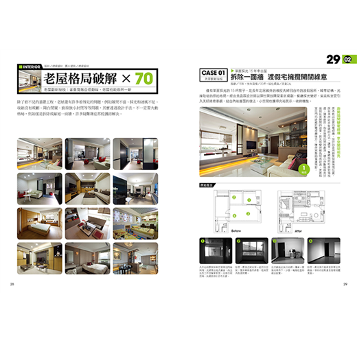 本書精選知名室內設計師的老屋裝修案例,從坪15~50坪的各種風格裝修巧思與創意設計,並在每個案例中特別引導標示出裝修祕技重點,利用完整說明搭配精美圖片來讓讀者可以確切了解每個案例的設計真諦。
