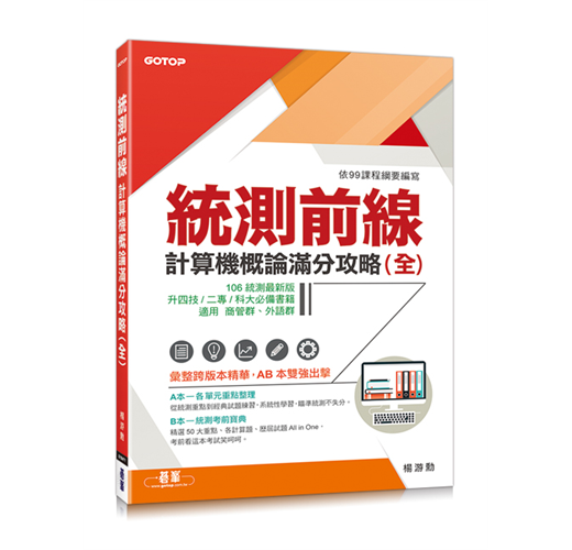 ‧全面統整歷年統測、二技、乙丙級檢定與獨家試題,並納入資訊新知與生活時事試題!