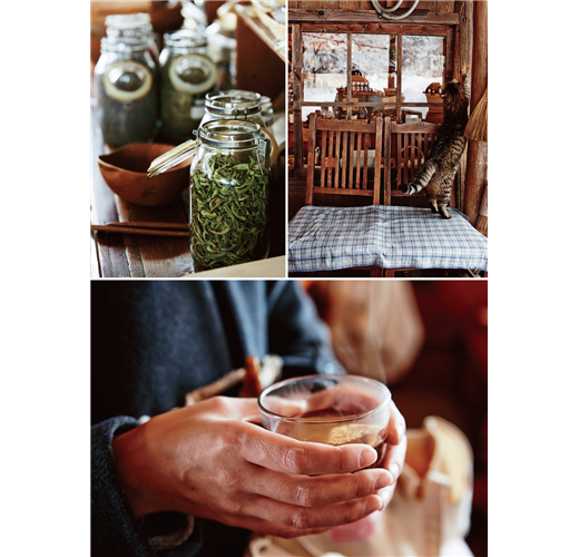 那麼,請進吧!當你開啟這一扇門時,門軸會嘎吱嘎吱作響,請別介意。進門後,一陣幽香輕柔地撲面而來,擺滿了瓶瓶罐罐的架子映入了眼簾。罐子裡有著各式各樣的香草,各種乾燥花、根葉、種子及樹皮,無不呈現出美麗的色澤,它們在罐子裡靜靜地沉睡著,等待人們的寵愛。精油則彷彿停止呼吸般,將香氛封鎖在小瓶子裡。暖爐點著後,整個房間暖和了許多,請享用一杯熱騰騰的現泡茶吧!