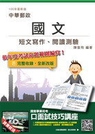 《國文(短文寫作、閱讀測驗)》依據中華郵政公司最新公告之考科內容編寫,完整對應最新考科範圍,擁有最新及最完整的考試內容!本書傳授短文寫作的步驟及方法,短文寫作的決勝關鍵在於能否於簡短的幾句話中把重點闡述出來,掌握技巧便能獲得閱卷老師的青睞!閱讀測驗收錄大量文學重要必讀古文及文意剖析,多看多讀多訓練,理解文人思維,必能掌握得分關鍵!