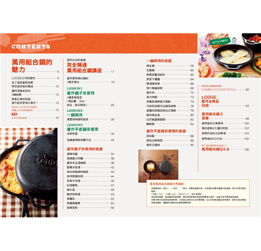 本書使用的鑄鐵鍋,是擁有120年歷史的美國知名品牌LODGE。在樸實的外型下卻擁有極佳的性能,不只適用於戶外露營,更是家庭主婦和單身貴族烹調時的好幫手。