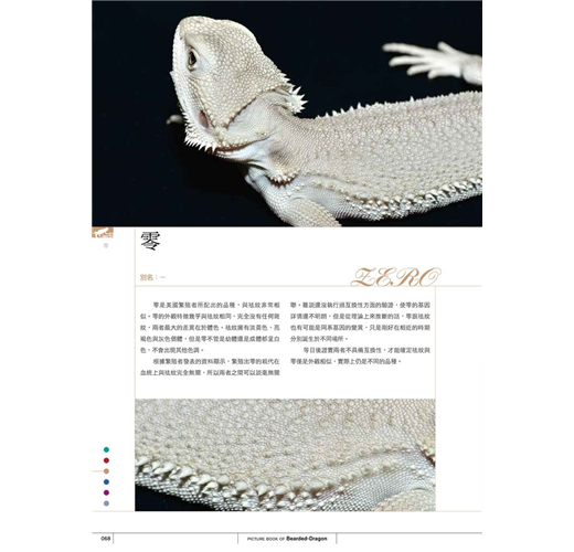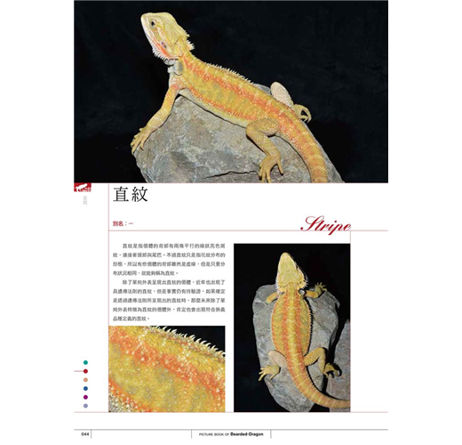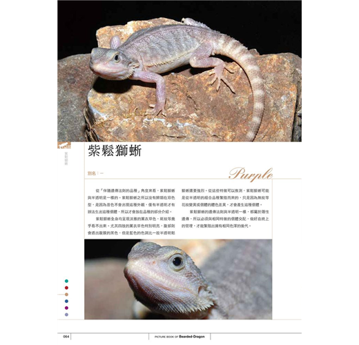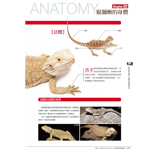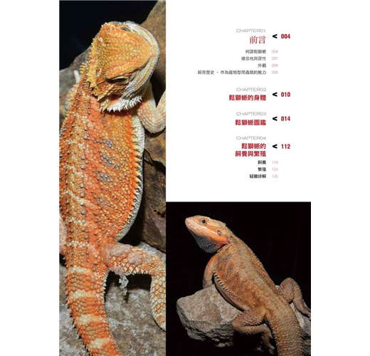 鬆獅蜥重視個體個性大於品種個性,所以只要個體本身的個性較親人,飼主就可以積極與個體互動,比其他爬蟲類更有「寵物」的感覺,所以可以容忍撫摸牠們等輕度的動作。鬆獅蜥也有好幾個品種存在,本書會盡量將所有品種都介紹出來,希望能幫助各位從眾多的品種與血統當中,選出符合自己喜好的個體。