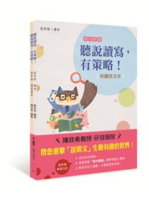 上述是十二年國教課綱的理念,為了達到此目標—成就每一個孩子,我們設計了「素養導向」的教材,讓教師、家長、關注教育的夥伴們看見理念落實的可能。《聽說讀寫,有策略!》這套叢書強調「不僅要學內容知識、更要學方法策略」、「不但要落實學校所學,更要應用於日常生活」。除了教材,使用教材引領小孩學習的教師、支持陪伴小孩學習的家長、甚至是在學習中的小孩,都是影響「是否能成就每一個孩子」的關鍵因素。