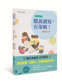 《聽說讀寫,有策略!》這套叢書的設計,正是以引導學生更有能力去發現問題、並探究學習的方法與策略為目的,針對不同年段的學習領域,分為低年級、中年級、高年級與國中四冊。每一冊均強調「讀本」與「學習筆記」同步運用,再透過「親近它」、「理解它」、「運用它 」三段學習步驟,循序引領教師、家長了解「方法取向」的語文課。