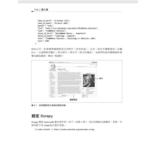 本書將帶領您實作一個專案,從抓取維基百科的諾貝爾獎得主資料開始,一直到建立一個互動式網站為止。在這個實作過程中,您將學到資料的抓取、清理、分析,以及透過D3.js將這些資料視覺化的方法。如果您想要利用Python或JavaScript建構資料視覺化網站,這本書正好可以滿足您的需求。