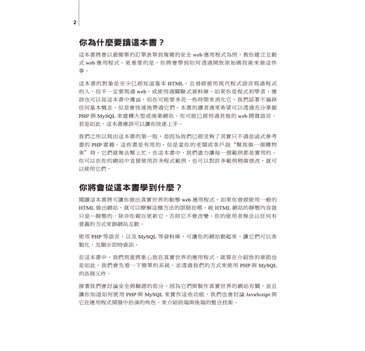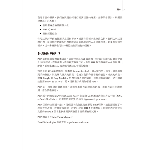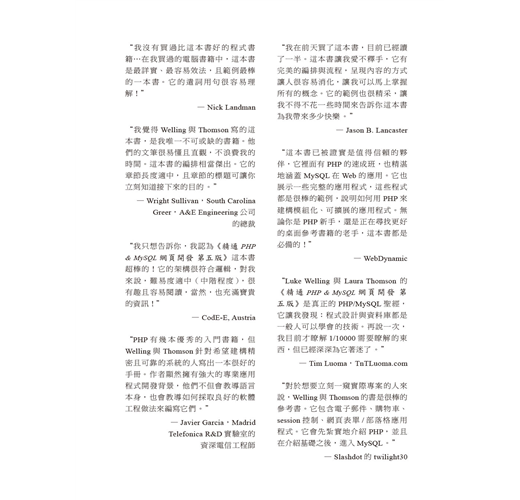 第五版內容已經全面更新、修訂與擴增,涵蓋PHP第5.6版與第7版的發展,以及MySQL最新的穩定版本加入的功能。
