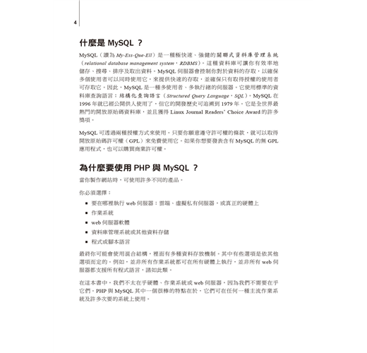 本書將會告訴你如何同時使用這些工具來產生令人印象深刻、互動式的web應用程式。它清楚地說明PHP語言的基礎,解釋如何設定與使用MySQL資料庫,接著展示如何使用PHP與資料庫及伺服器互動。