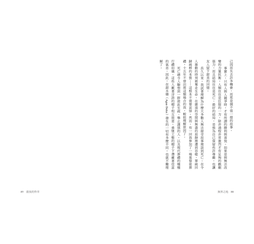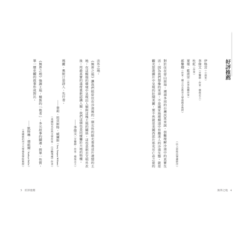 《無界之地》讓我們能從住在沙漠裡的一個女性的眼光看進這片遼闊的土地,在這極端的環境中呈現出人類與這塊土地的關係,這也是剝去文明外衣後,用最真實的溫度重新認識人類,我們這個也是同樣屬於大地的物種。