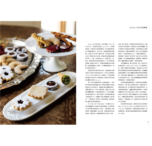 本書的餅乾,始於的迷你花式點心(petit four)。日本UKAI集團旗下的米其林星級餐廳「UKAI亭」在套餐的最後,以推車形式將餅乾、馬卡龍或費南雪等小型糕點,讓客人取用。廣受好評更有越來越多的聲音提出「想要在家裡也能享用」,所以法式糕點店「Atelier UKAI」終於在2013年開幕。書中除了人氣破表的西式餅乾外,更特別的是收錄了搭配「UKAI鳥山」、「豆腐屋UKAI」等和食餐廳,以日式食材製作的獨特餅乾,像是:黃豆粉、抹茶、芝麻、柚子等食材,絕對是獨一無二的配方與風味!