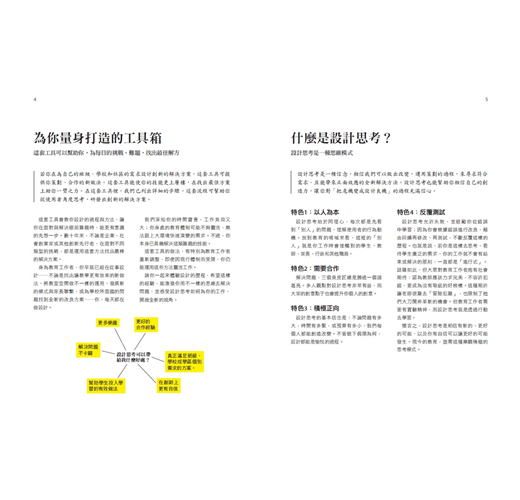 特色1 越洋直擊:從企業到中小學都在學的創新思考法,從美國到台灣都在學的設計思考課程。圖文並茂呈現設計思考發源地,專訪美國教育現場如何透過設計思考,打破僵固思維,展現教育新貌。