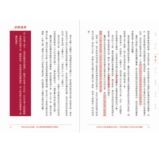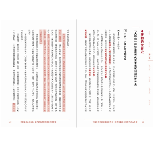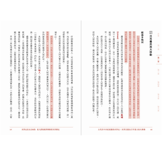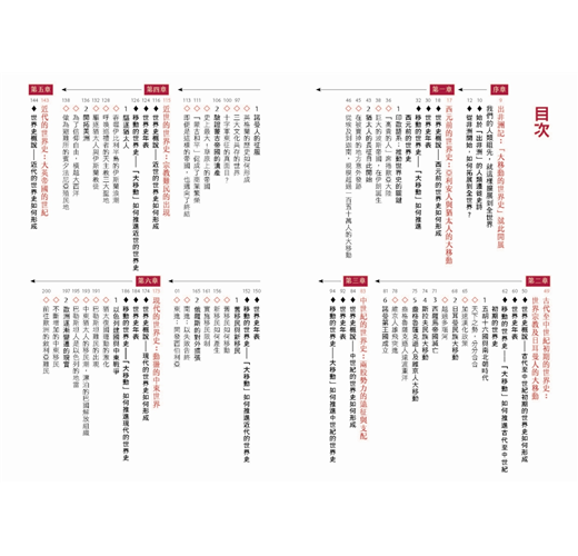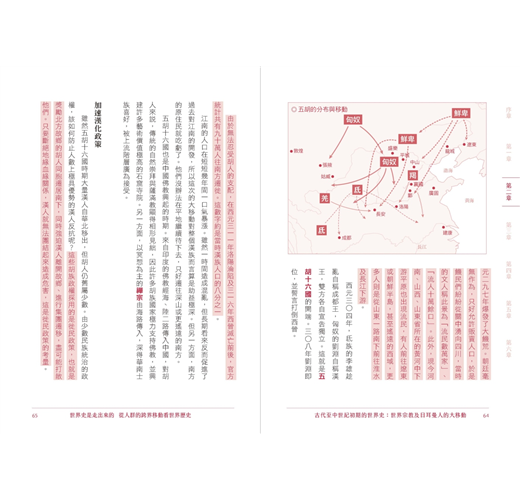 「人群的移居與旅遊、商品流動,以及思想與制度的轉移,這些歷程都是創造今日全球化世界的動力。本書沒有什麼艱深的全球史理論與意識形態,卻能以淺顯易懂的文字,勾勒出人類數千年來的大規模移動所推動的世界史圖像。」――國立東華大學歷史系副教授 蔣竹山
