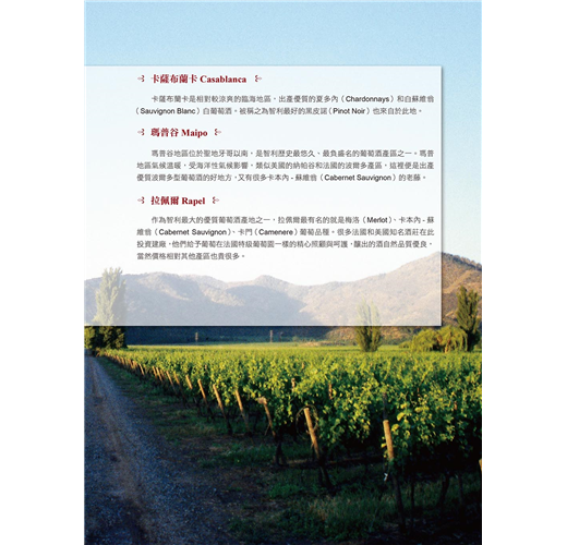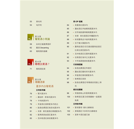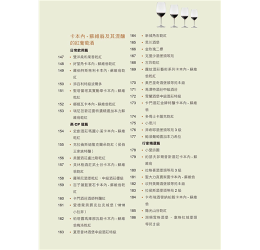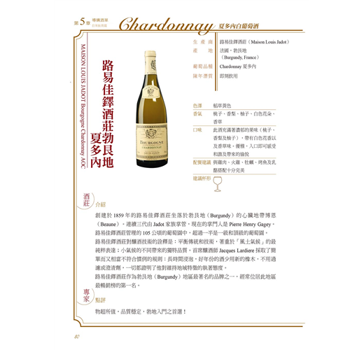 對這些葡萄酒所在酒莊的資訊及本身的甘醇進行鑑賞,還提供飲食搭配的建議