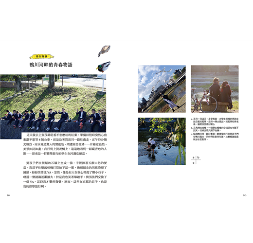 ◎鴨川河畔的日常練習曲:心情好就到三角洲跳烏龜,心情壞也能夠丟石頭打水漂;人多可以野餐,春天看櫻花、秋日賞紅葉與銀杏。當鴨川河水不經意地淌流進日常作息,京都生活的美好才正要開始。