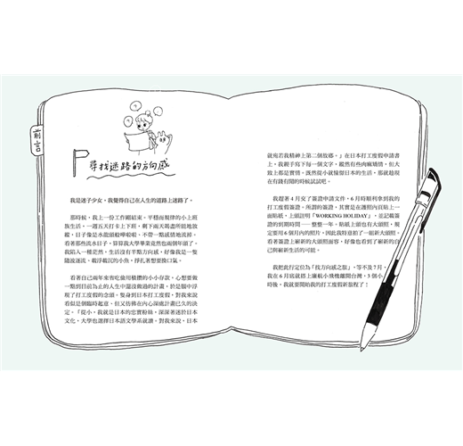 看著自己兩年來省吃儉用積攢的小小存款,心想要做一點到目前為止的人生中還沒做過的計畫,於是腦中浮現了打工度假的念頭。隻身到日本打工度假,對我來說看似是個臨時起意、但又彷彿在內心深處暗自計畫已久的決定。「從小,我就是日本的忠實粉絲,深深著迷於日本文化,大學也選擇日本語文學系就讀。對我來說,日本就宛若我精神上第二個故鄉。」在日本打工度假申請書上,我親手寫下每一個文字,縱然有些肉麻矯情,但大致上都是實情。既然從小就憧憬日本的生活,那就趁現在有錢有閒的時候試試吧。