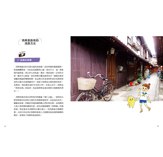 迎風踩著腳踏車,模糊的風景咻咻咻地向後跑,京都的記憶從點延伸成線:淺紫色的牽牛花盛開屬於夏季的芬芳、電線把藍得不真實的天空切割成一格一格、小小地藏安靜地守護著街上人家……我用畫筆記錄這一切,將京都的日常絕景傳遞給下一位旅人。