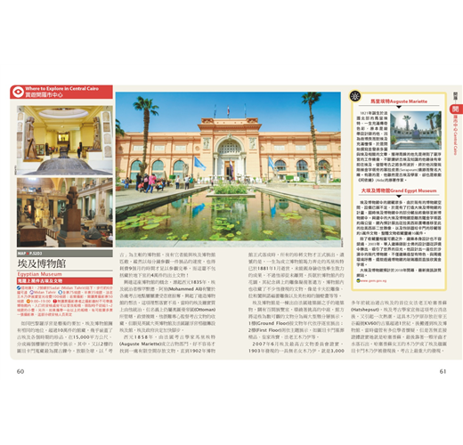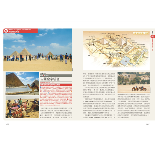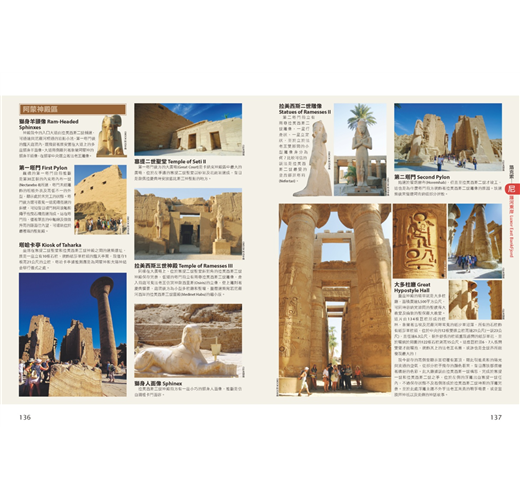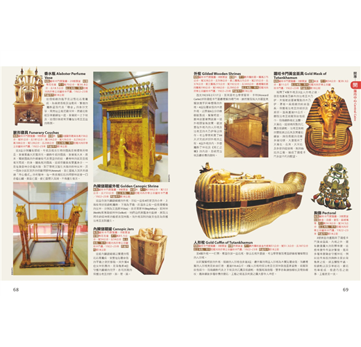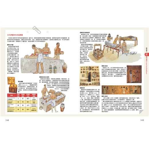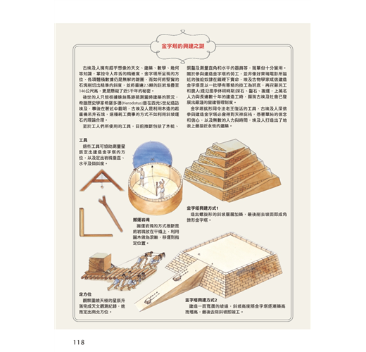 各大重點古蹟都有詳盡的解構,圖、文、平面圖或立體圖並列,還有興建金字塔、製作木乃伊圖解,讓讀者對埃及幾千年的古文明能一目瞭然,進入景點、博物館不害怕,帶著本書,絕對不再霧煞煞!