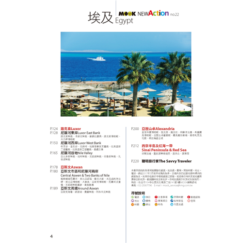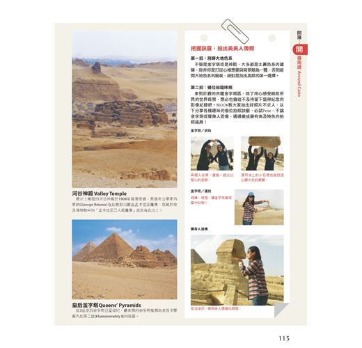 另外,本書也收錄因亞歷山大大帝欽點而鹹魚翻身的亞歷山卓,這裡是地中海一帶知名的濱海度假勝地;而傳說中摩西獲領十誡的西奈山所在的西奈半島,如今則是紅海一帶最熱門的潛水地點,也增添了埃及更多樣的觀光魅力。