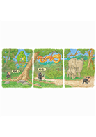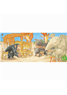 ■ 故事中,作者將前頁的景變成下一頁的細節,好讓小讀者可以再進一步觀察。比如:小猩猩坐在大象媽媽頭上,在原野上看到長頸鹿抱抱的這一頁,上頁剛退場的獅子家族即變成本頁遠方的背景。孩子通常在第二或第三次閱讀時,就會發現這樣的驚喜,原來動物親子們一路跟隨小猩猩,直到他找到了媽媽 (正確說來,應該是媽媽找到他)。
