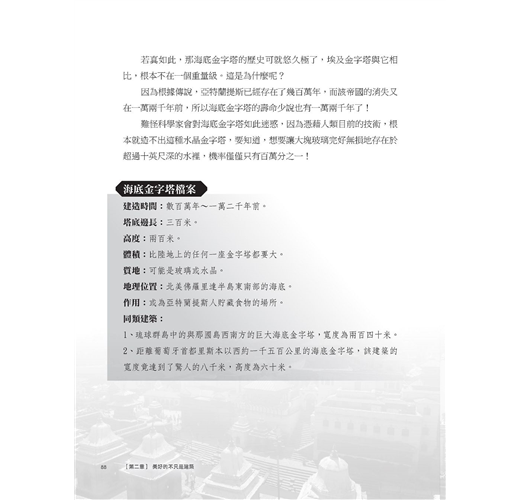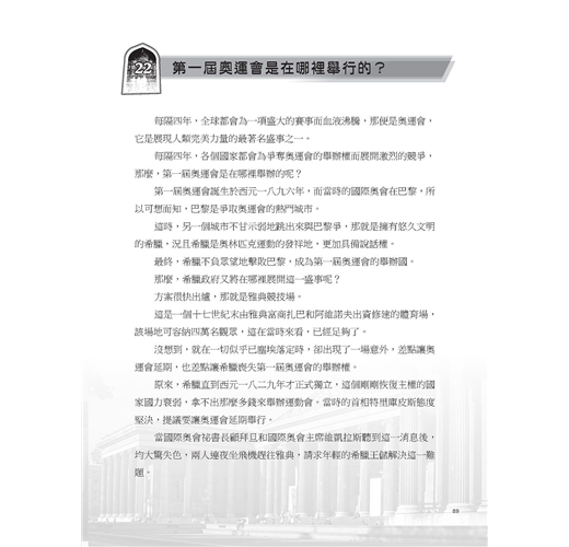 為了讓讀者能有更多的瞭解,我將本書分成四個章節,每個篇章都以一個謎題為開端,帶著讀者穿越時空,回到當時的場景去尋找答案,並在章節最末,都附上了相關的知識點,以滿足「建築愛好者」的求知慾。