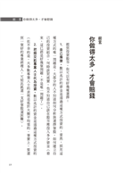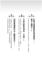 這本書最可貴之處,就是告訴讀者「你其實可以不買」。作者在書中列出幾種比較有疑慮、容易出問題的股票條件,讓讀者直接過濾掉這類股票。這就像以前寫選擇題時都會用的刪去法,當有問題的股票大都被過濾掉以後,剩下的自然就是好股票了,而從中選出的股票,其上漲的機率自然也會大增。