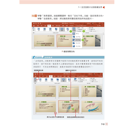 本書應用明確、步驟教學條理清晰,功能技巧深入淺出,再配合詳盡的範例操作圖示等,即可讓您以最輕鬆、快速的方式學會各種多媒體簡報設計方法和技巧。如今PowerPoint 已經成為職場簡報與展示上重要且高效率的軟體工具,若能開始靈活地應用PowerPoint 各項功能,不僅能幫您順利完成各項任務,無形中也提升了自己在職場上競爭力!