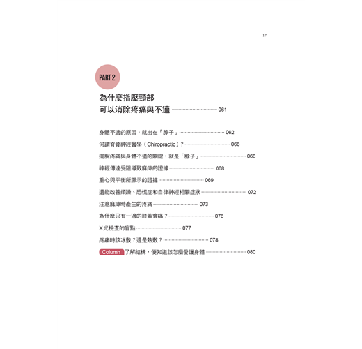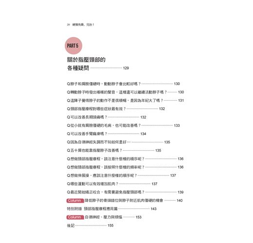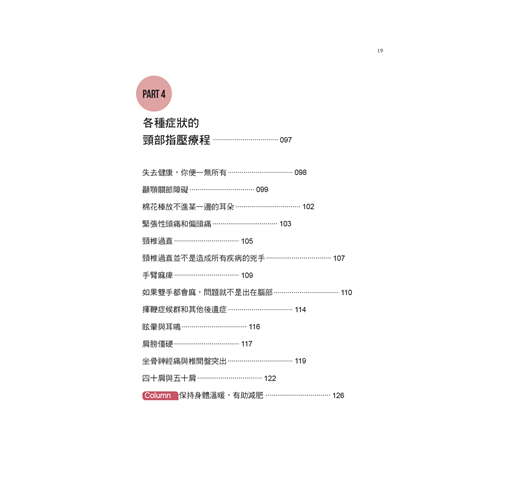 本書介紹的頸部療程,一天只要徒手指壓五分鐘