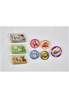 遊戲內容物:圖板6片、卡片一疊、指示物配件等