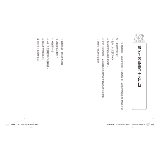 「本書提供讀者一個簡單的概念,即:今日的好習慣就是明日健康的根基。」