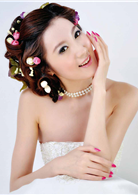 此造型以經典的韓式扭轉手法操作,精美別致的鑽飾裝飾使原本端莊穩重的新娘多了一份時尚亮麗。