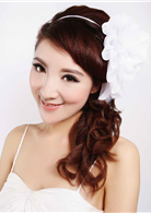 STEP 08 瀏海和頂髮區銜接處戴花朵裝飾。