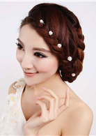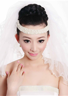 整體髮型由飽滿光潔的髮包和工整的髮辮組成,再配上別致的珍珠小髮簪,突顯了新娘高貴典雅的完美氣質。